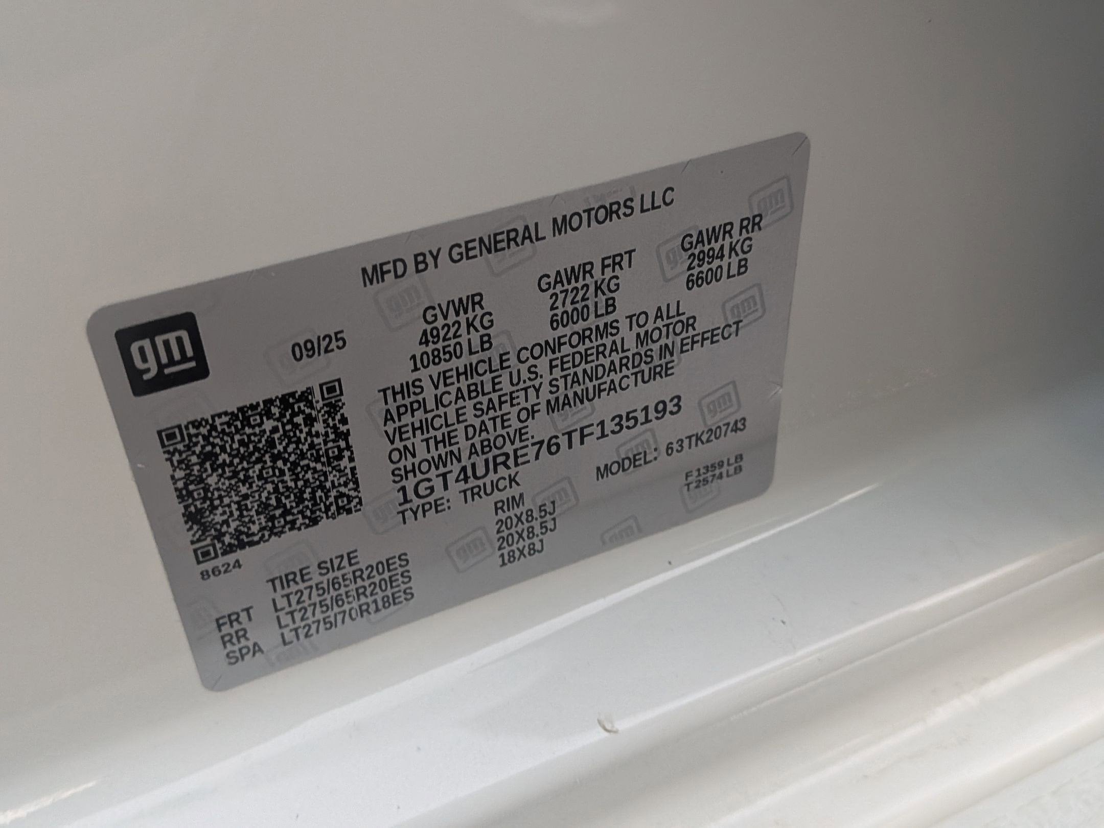 - 18" LT275/70R18 all-terrain, blackwall spare tire