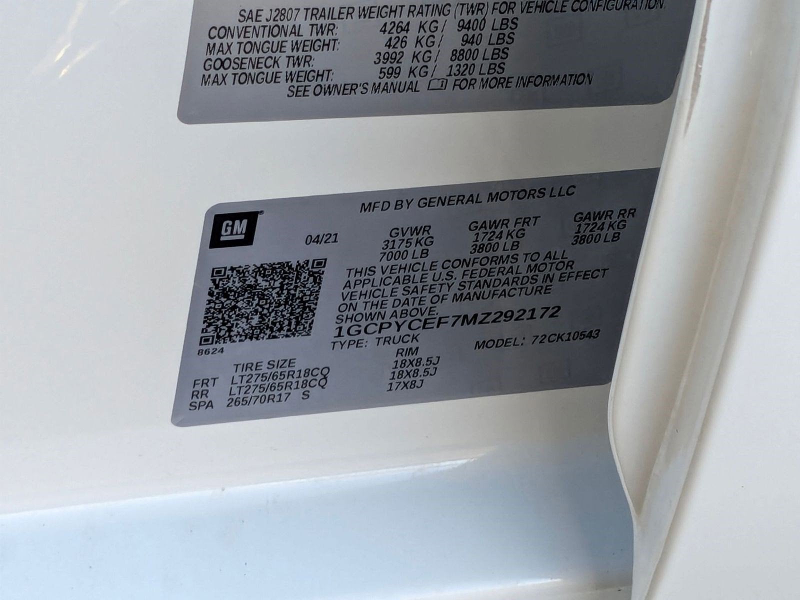 SAFETY CONFIDENCE PACKAGE includes (UEU) Forward Collision Alert, (UHY) Automatic Emergency Braking, (UKJ) Front Pedestrian Braking, (UK3) Steering Wheel Audio Controls and (UDD) Driver Information Center, LPO, DARK ESSENTIALS PACKAGE includes (RIK) Black Silverado nameplates, along with where applicable, Black Custom/LT/RST/LTZ/High Country/6.2L/Duramax badges, LPO and (SB7) Black tailgate CHEVROLET lettering, LPO, (dealer-installed) , TIRES, LT275/65R18C MT BLACKWALL GOODYEAR WRANGLER DURATRAC (STD), SUMMIT WHITE, STEERING WHEEL AUDIO CONTROLS, SEATS, FRONT 40/20/40 SPLIT-BENCH with covered armrest storage (STD), REAR AXLE, 3.42 RATIO, NOT EQUIPPED WITH ACTIVE FUEL MANAGEMENT, LPO, WHEEL LOCKS, SET OF 4 (dealer-installed), LPO, BLACK TAILGATE LETTERING (dealer-installed).
